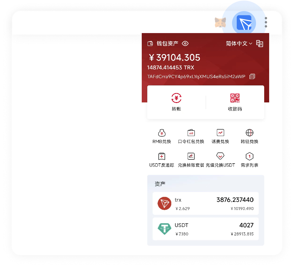 深度支持 TRON 网络:支持 TRX 以及 TRC10、TRC20、TRC721 等币种,支持特色的质押获取资源及代理资源机制;